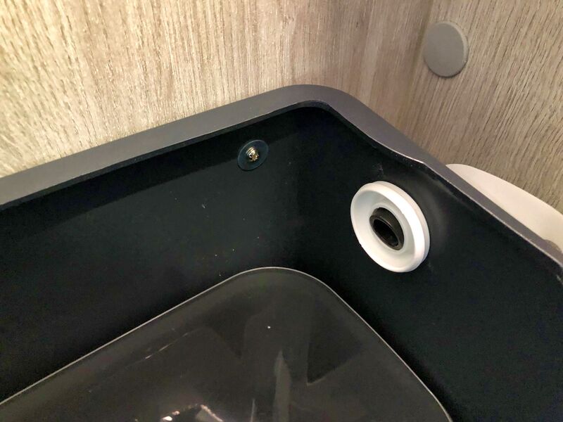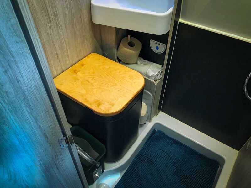 Der neue Stellplatz, Bettentopper und Fliegentür hinten kennst Du ja bereits. Nun haben wir uns auch endlich an den Umbau unserer Chemietoilette in eine Trockentrenntoilette (TTT) gewagt. Und das war ganz schön spannend, schließlich sägt man ja nicht all zu gerne an seinem fast brandneuen Van herum. Wir denken, es hat sich gelohnt. Alle Löcher sind wieder geschlossen, mehr Platz haben wir nun auch im Bad und wie das dann tatsächlich mit der Benutzung werden wird, das werden wir auch gern mit Dir teilen (ohne zu sehr ins Detail zu gehen). Wir haben uns nach einiger Recherche für eine Trelino L in schwarz entschieden. Nicht nur die vielen positiven Bewertungen sprechen für dieses Modell, sondern auch die Größe der Behälter, wir wollen ja so selten wie möglich entsorgen müssen. Selbstverständlich wurde die Trelino fachmännisch fest installiert. Sie ist mit zuschaltbarer SOG-Entlüftung ausgestattet und zum putzen auch leicht wieder komplett herausnehmbar.